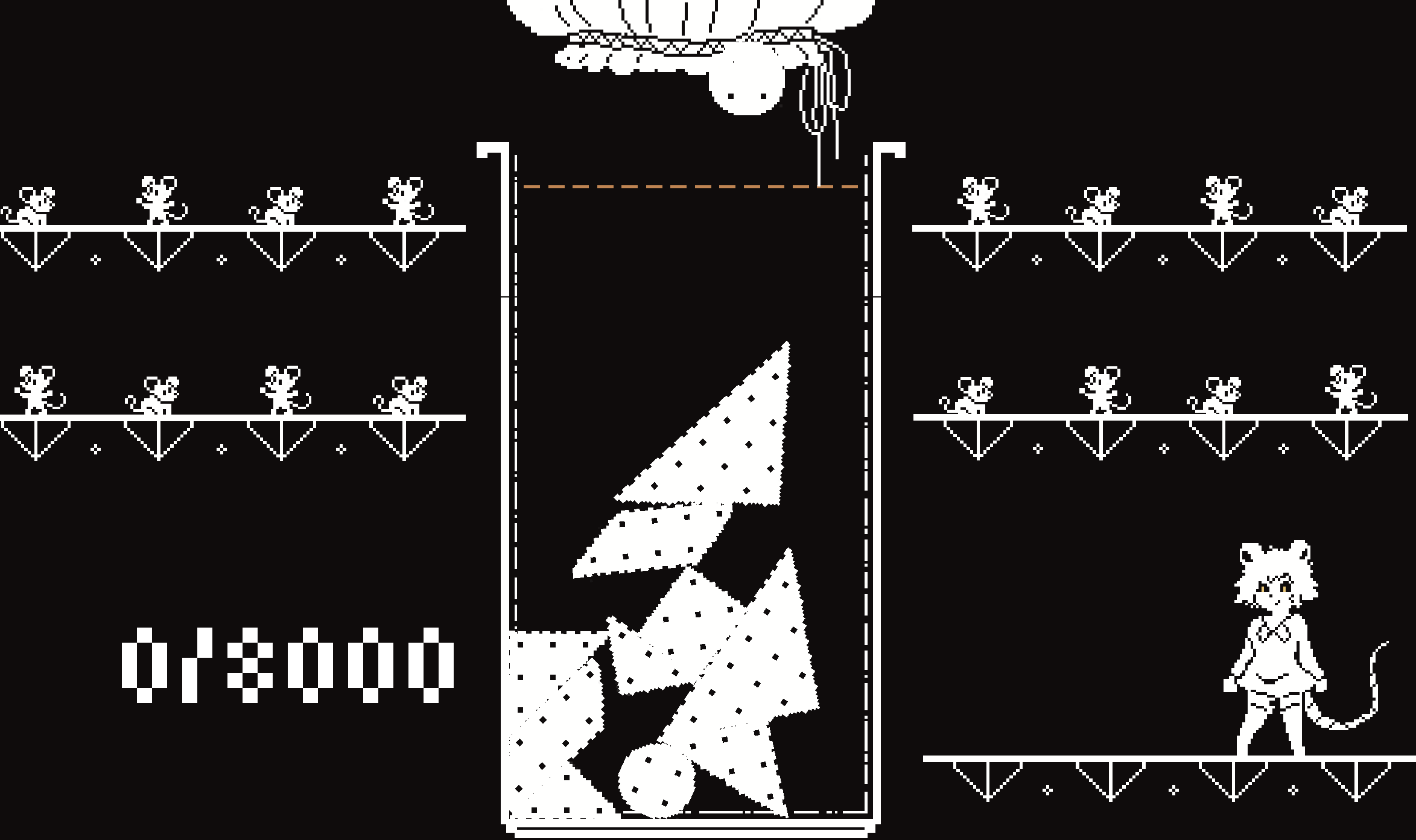 This is a story about mice and biscuits, with a focus on presentation and visuals. The game features a minimalist 1-bit black-and-white art style and simple color design.